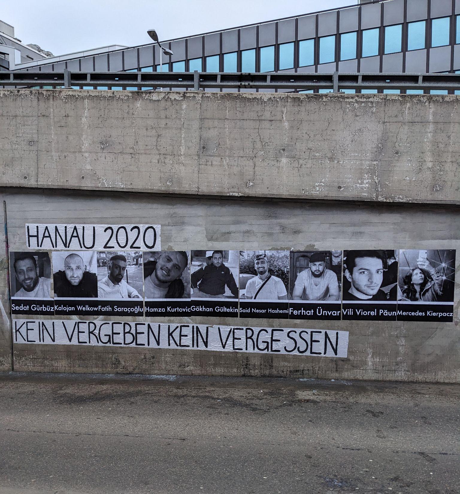 Am 19. Februar 2020 hat ein rassistischer Attentäter in Hanau auf Menschen geschossen. Ferhat Unvar, Gökhan Gültekin, Hamza Kurtović, Said Nesar Hashemi, Mercedes Kierpacz, Sedat Gürbüz, Kaloyan Velkov, Vili Viorel Păun und Fatih Saraçoğlu wurden ermordet.