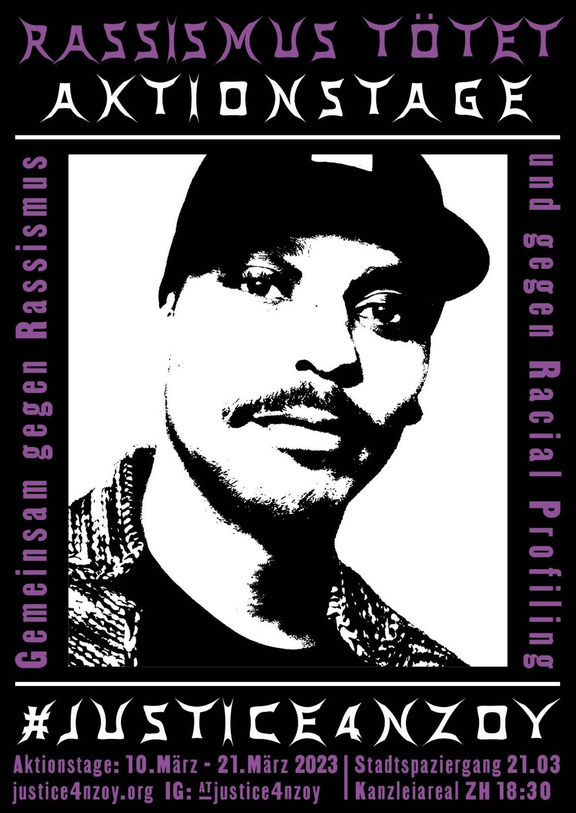 Rassismus tötet - ganz konkret am 30. August 2021 in Morges (VD). Die Polizei erschoss den 37-jährigen Nzoy aus Zürich, ein Mord mit eindeutig rassistischem Hintergrund. Die Behörden sind bis jetzt nicht in der Lage und offenbar auch nicht willens, den Fall aufzuklären. Die Angehörigen und wir alle wollen Gerechtigkeit! Tragen wir gemeinsam unsere Betroffenheit und unsere Abscheu vor diesem rassistischen Mord auf die Strasse!