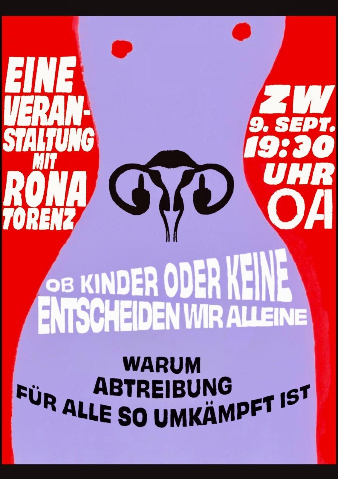 Teil 2 unseres Fokus auf das Recht auf Abtreibung: die Veranstaltung mit Rona Torenz («Ja heisst Ja?», Schmetterling Verlag 2019) am Samstag, 09. September 2023 um 19.30 in der Zentralwäscherei Zürich.