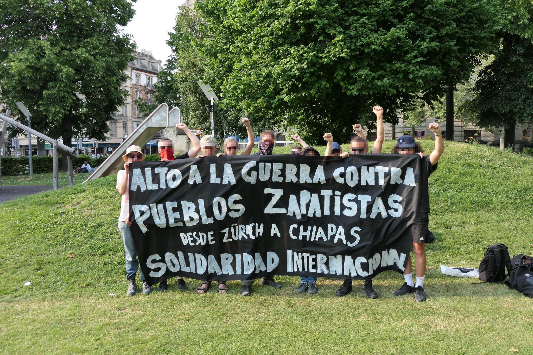 Solidarische Grüsse aus Zürich zum globalen Aktionstag gegen den Krieg in Chiapas. Gegen die paramilitarischen Angriffe auf zapatistische Gemeinden und das Wegschauen des mexikanischen Staates!